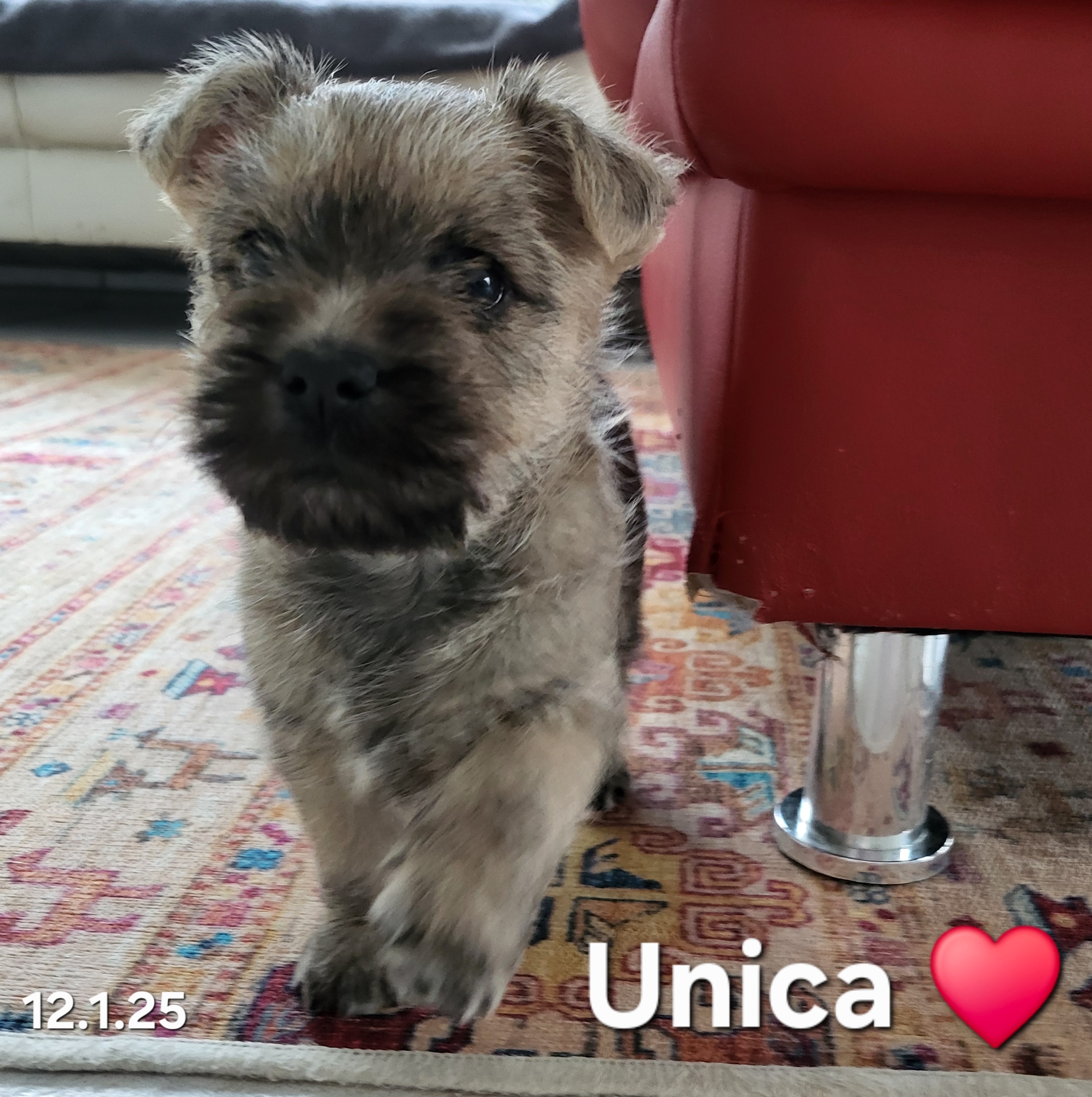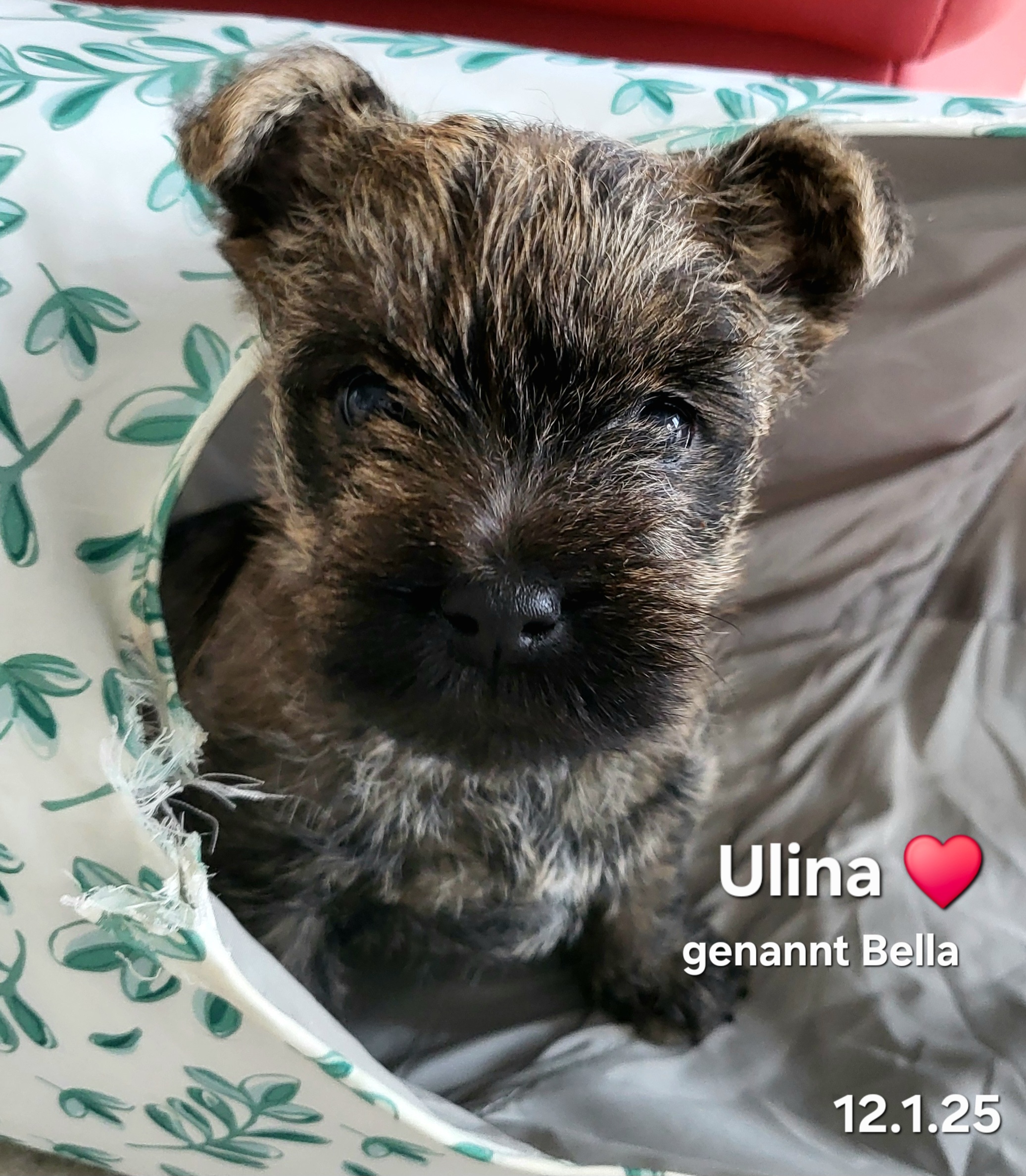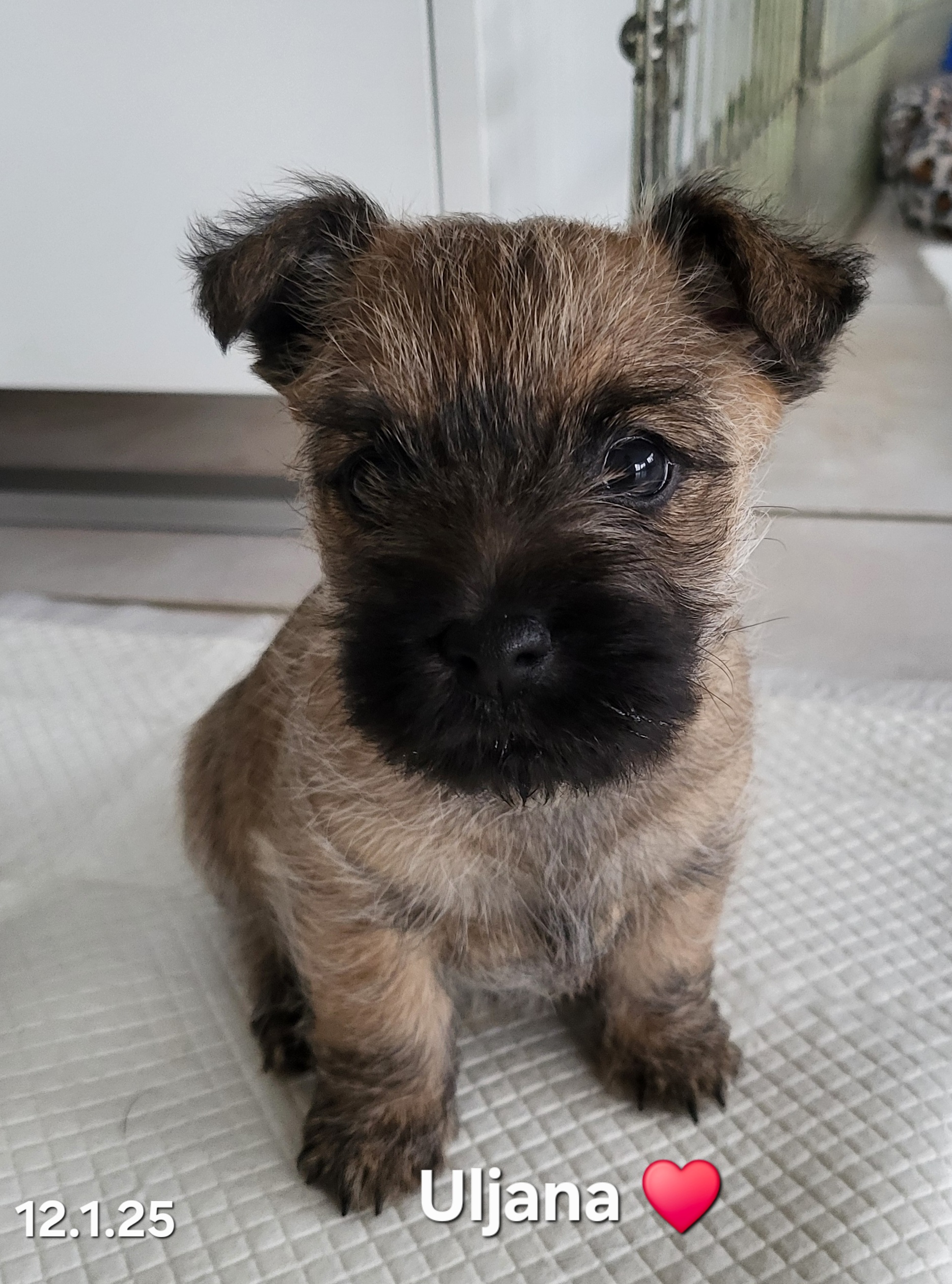 Die Welpen werden entwurmt, geimpft und tragen einen Microchip. Sie wachsen im Haus und Garten zusammen mit anderen Cairns und Meerschweinchen auf. Sie sind an Kinder, ans Autofahren und ans Alleinsein gewöhnt.